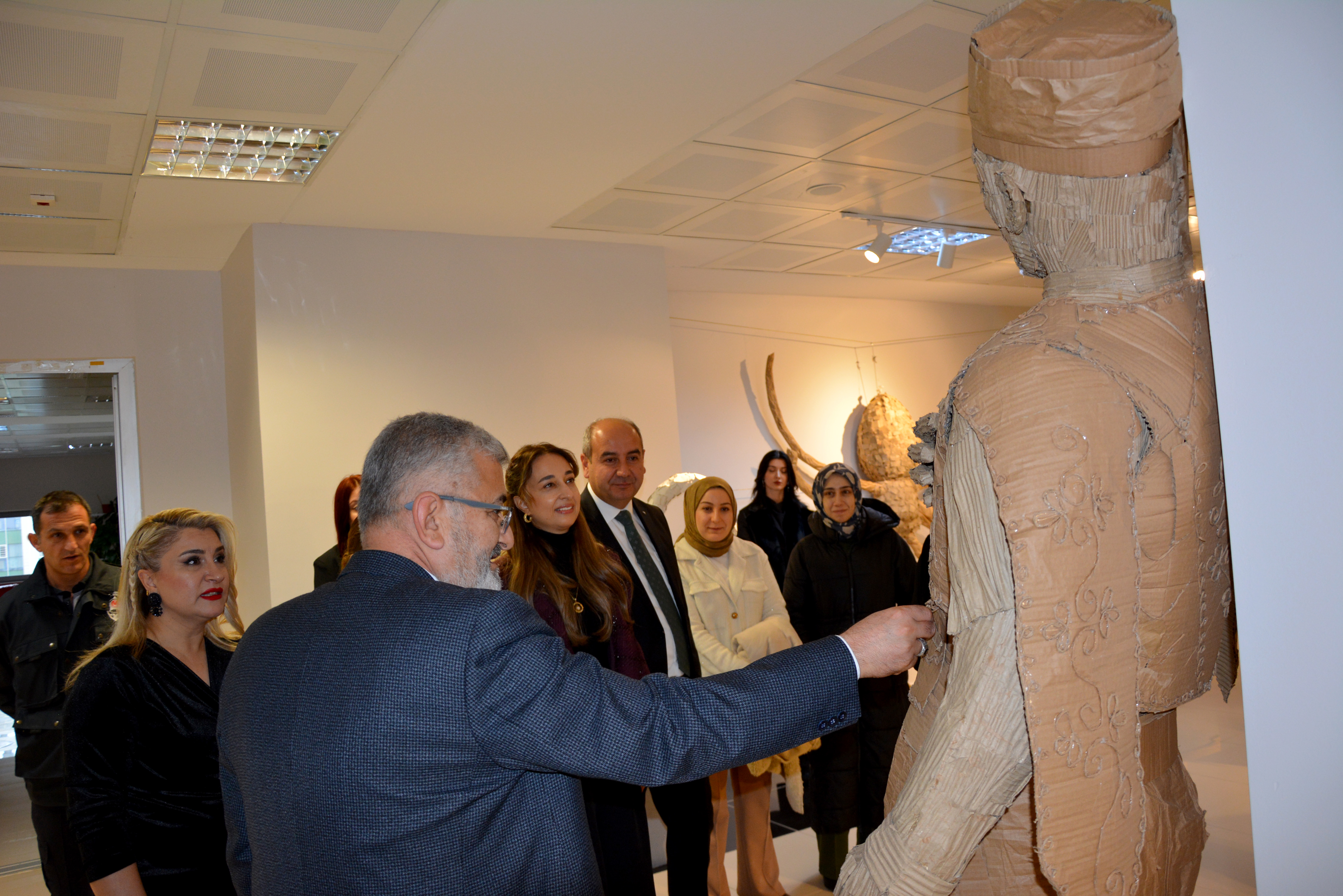 Sergide; gazete kâğıtları, eski kartonlar ve kullanım ömrünü tamamlamış ambalaj malzemeleri, uzun ve titiz bir emeğin ardından sanatın estetik diliyle yeniden yorumlandı. Yalnızca kâğıt ve yapıştırıcı kullanılarak hazırlanan 25 özgün heykel, ziyaretçilerden tam not aldı. Öcalan, projede emeği geçen öğrencilere ve serginin hazırlanmasında destek veren SKS Daire Başkanlığına teşekkür etti.