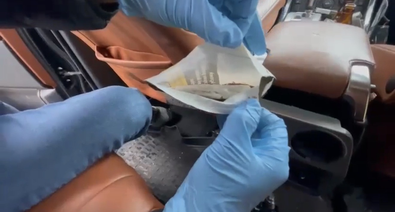 Elektronik sistem aktif hale getirildiğinde açılan gizli bölmede, 17,25 gram bonzai (sentetik kannabinoid), 3,35 gram metamfetamin, 1 adet ruhsatsız Glock marka tabanca ve 15 adet tabanca fişeği ele geçirildi. Ele geçirilen maddelere ve silaha polis ekipleri tarafından el konuldu.
