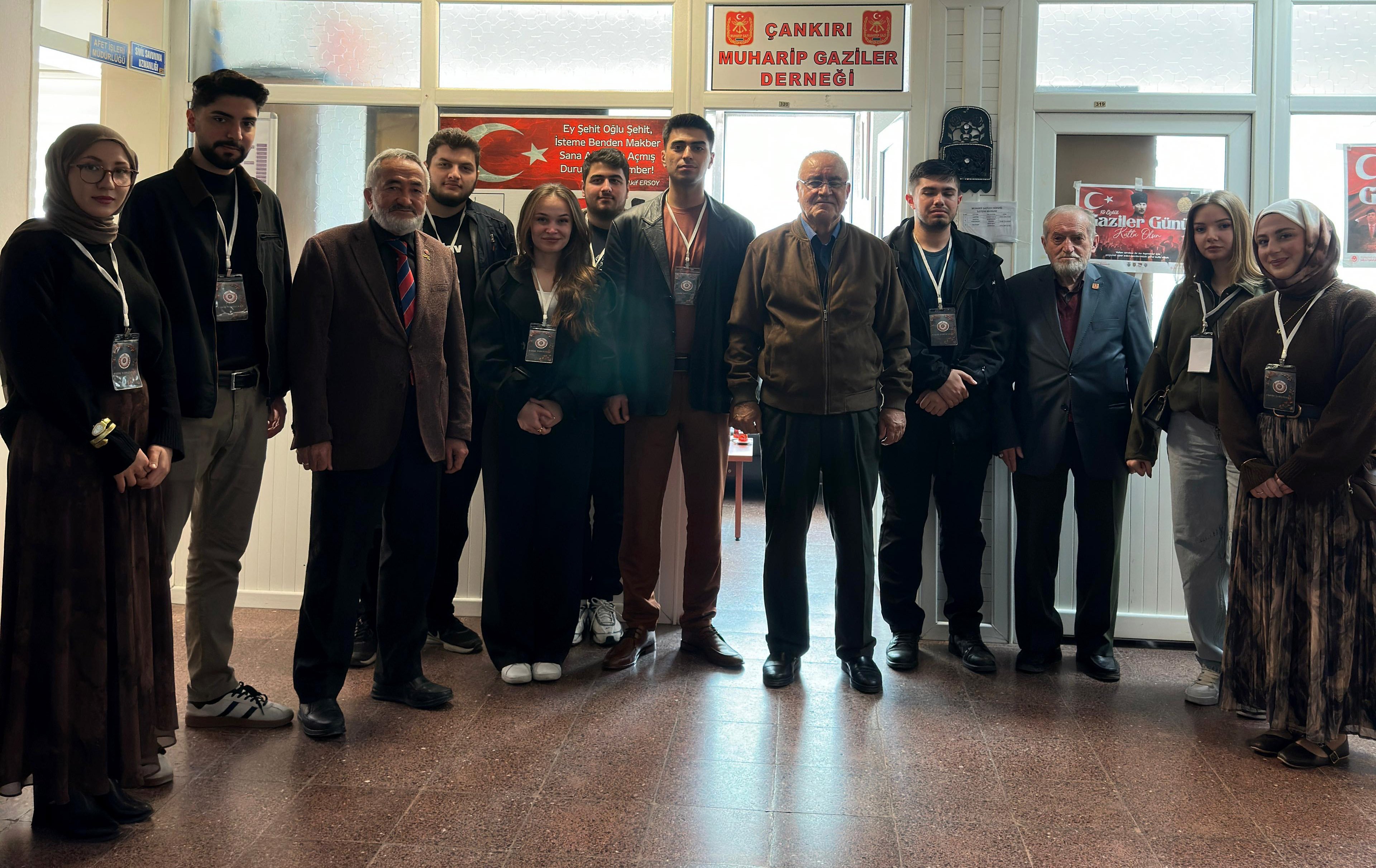 Çankırı Karatekin Üniversitesi (ÇAKÜ) Tarih Topluluğu, Çankırı Muharip Gaziler Derneği’ne anlamlı bir ziyaret gerçekleştirdi. Ziyarette, Kıbrıs Barış Harekâtı’nın 50. yılı yaklaşırken, harekâtta görev alan gazilerle bir araya gelinerek hem dönemin tarihi süreci hem de adadaki Türk varlığının önemi üzerine sohbet edildi.