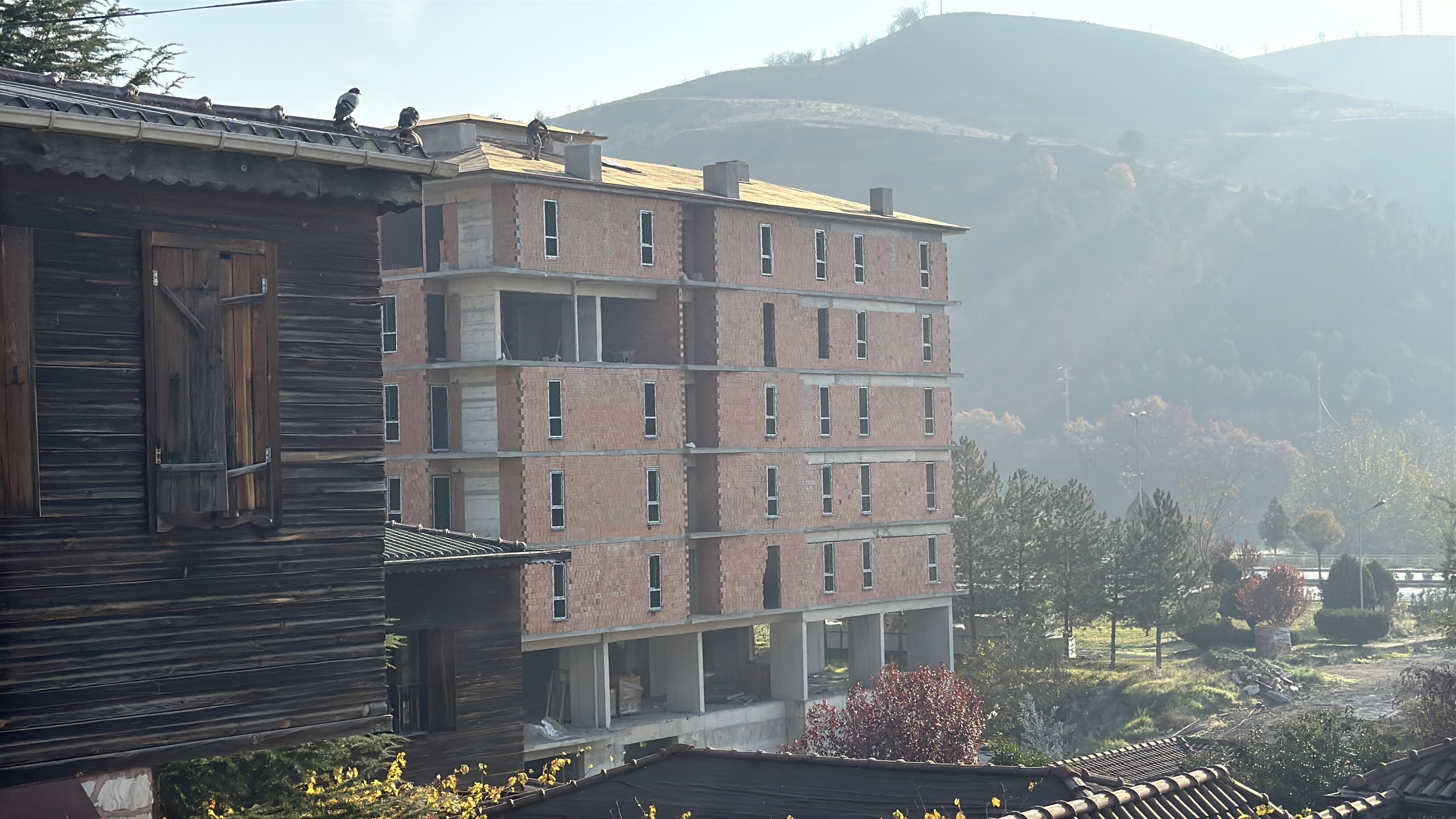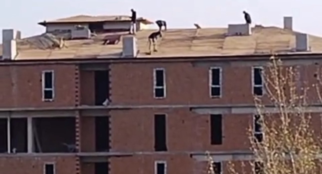 Karabük’ün Yeşil Mahallesi Şehit Ateşe Reşat Bulvarı’nda yapımı süren 6 katlı bir binada, işçilerin güvenlik önlemi almadan çalıştığı anlar cep telefonu kamerasına yansıdı. Görüntülerde, işçiler metrelerce yüksekte, hiçbir güvenlik ekipmanı kullanmadan çatının kenarında temizlik yaparken görülüyor.