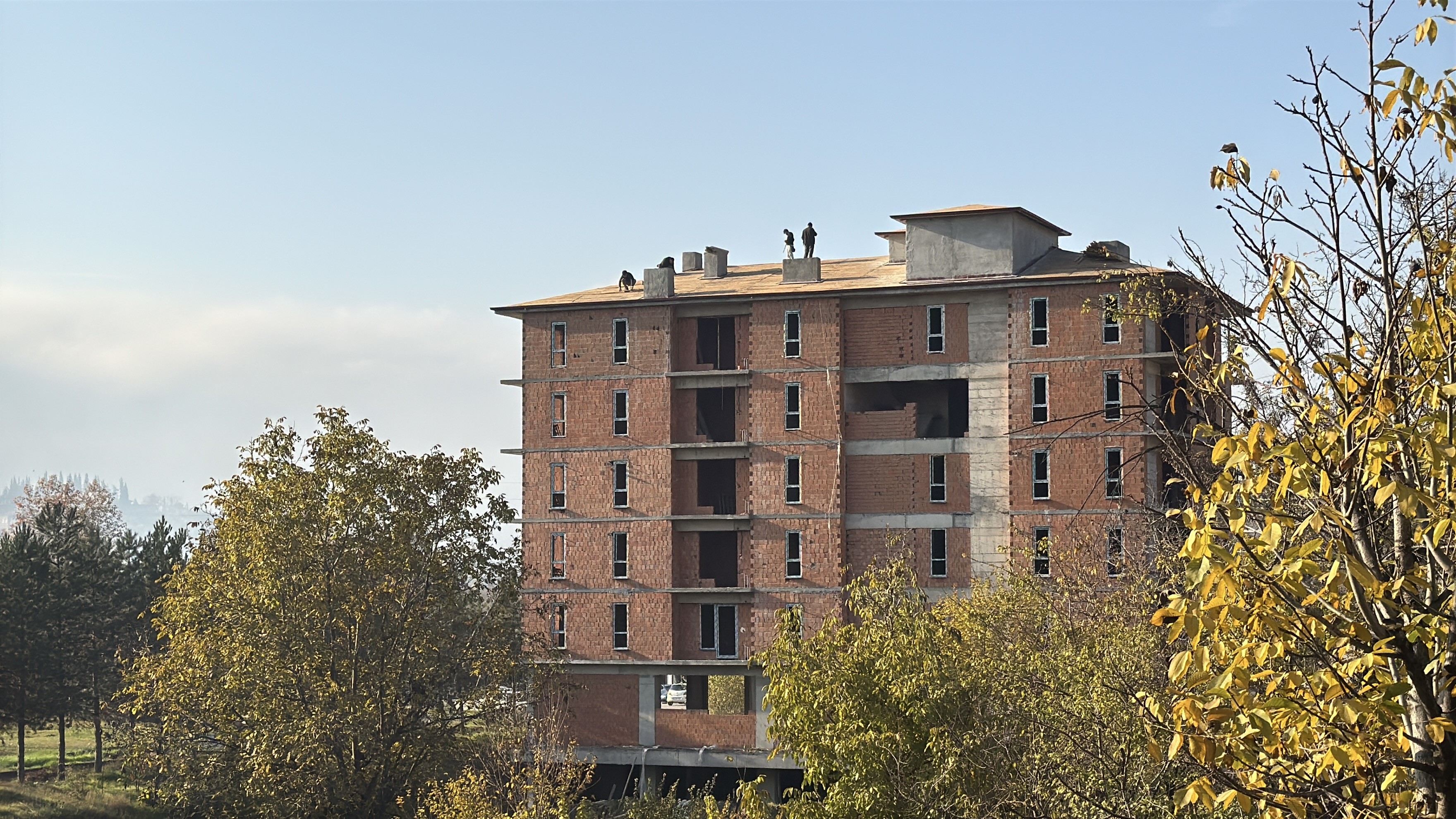 Vatandaşlar tarafından kaydedilen görüntülerde, işçilerin dengesini kaybetme riskine rağmen çalışmalarına devam ettiği dikkat çekiyor. İnşaatta herhangi bir korkuluk veya emniyet halatı olmaması, yüksekten düşme tehlikesini büyük ölçüde artırıyor.