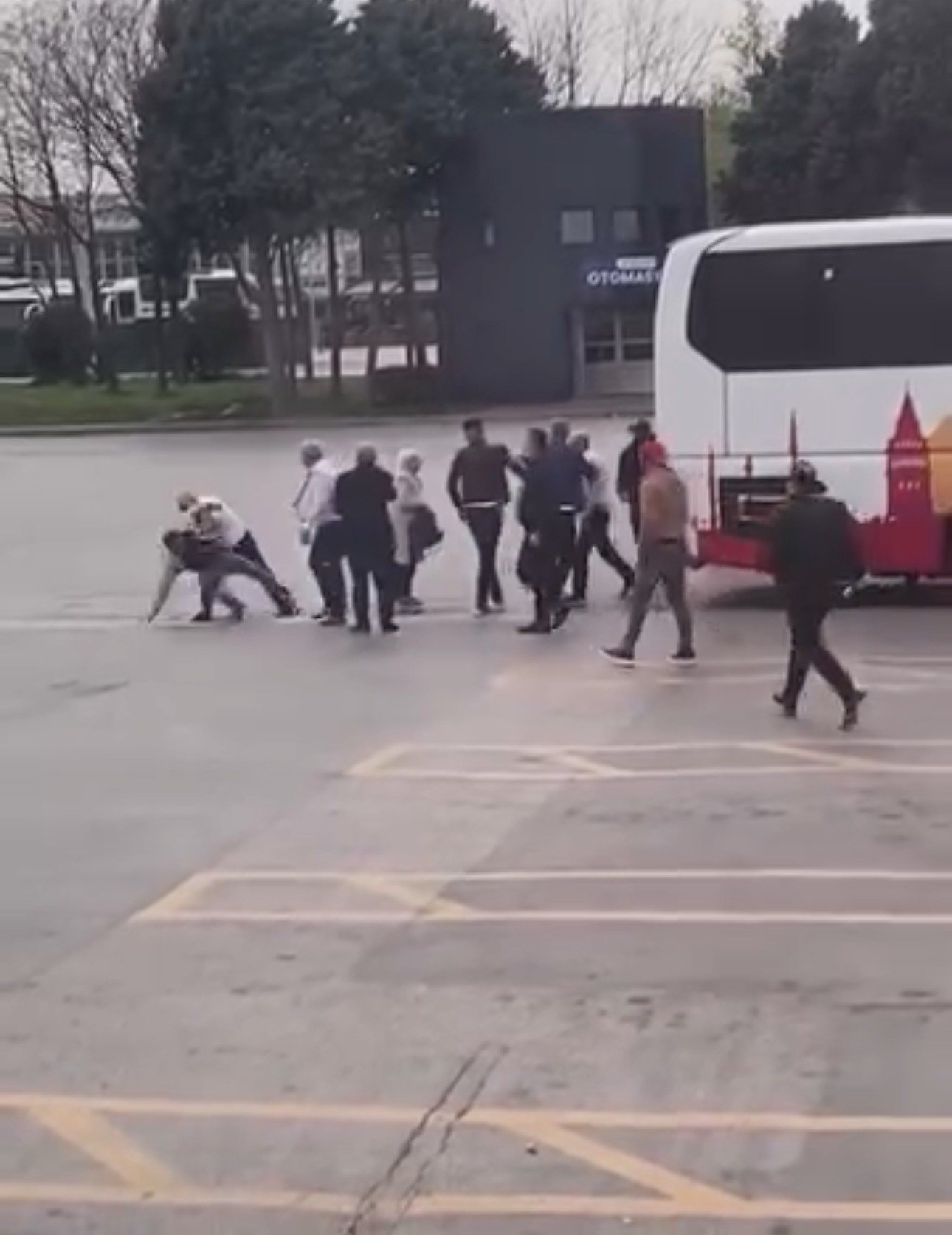 Görüntülerde tarafların birbirine saldırdığı ve çevredekilerin müdahale etmeye çalıştığı anlar yer aldı.