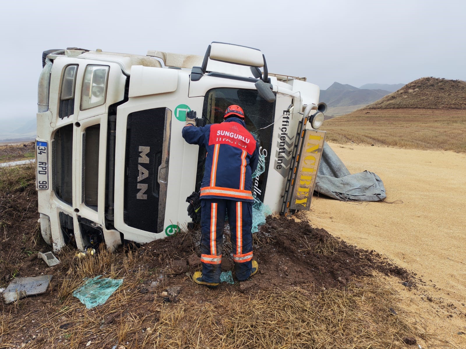 Edinilen bilgilere göre, İbrahim İ. yönetimindeki 34 RPD 98 plakalı tır, seyir halindeyken virajı alamadı. Yağış nedeniyle yolun kayganlaşması sonucu direksiyon hâkimiyetini kaybeden sürücü, aracıyla birlikte devrildi. Devrilen tır, yol kenarında yan yatarak durabildi. Kazanın ardından sürücü araç içerisinde sıkıştı.