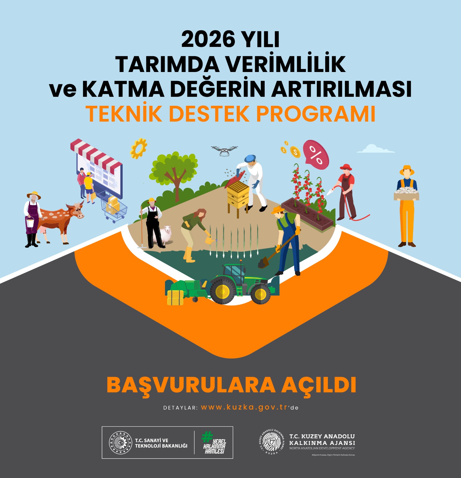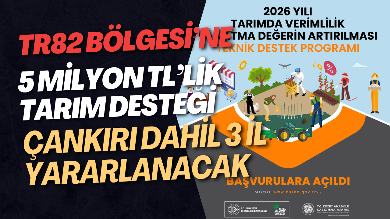 Kuzey Anadolu Kalkınma Ajansı (KUZKA) tarafından hazırlanan “2026 Yılı Tarımda Verimlilik ve Katma Değerin Artırılması Teknik Destek Programı” başvuruya açıldı. Sanayi ve Teknoloji Bakanlığı koordinasyonunda yürütülen program kapsamında, Çankırı’nın da yer aldığı TR82 Bölgesi’nde tarımsal üretimin güçlendirilmesi ve yerel ürünlerin ekonomik değerinin artırılması hedefleniyor.