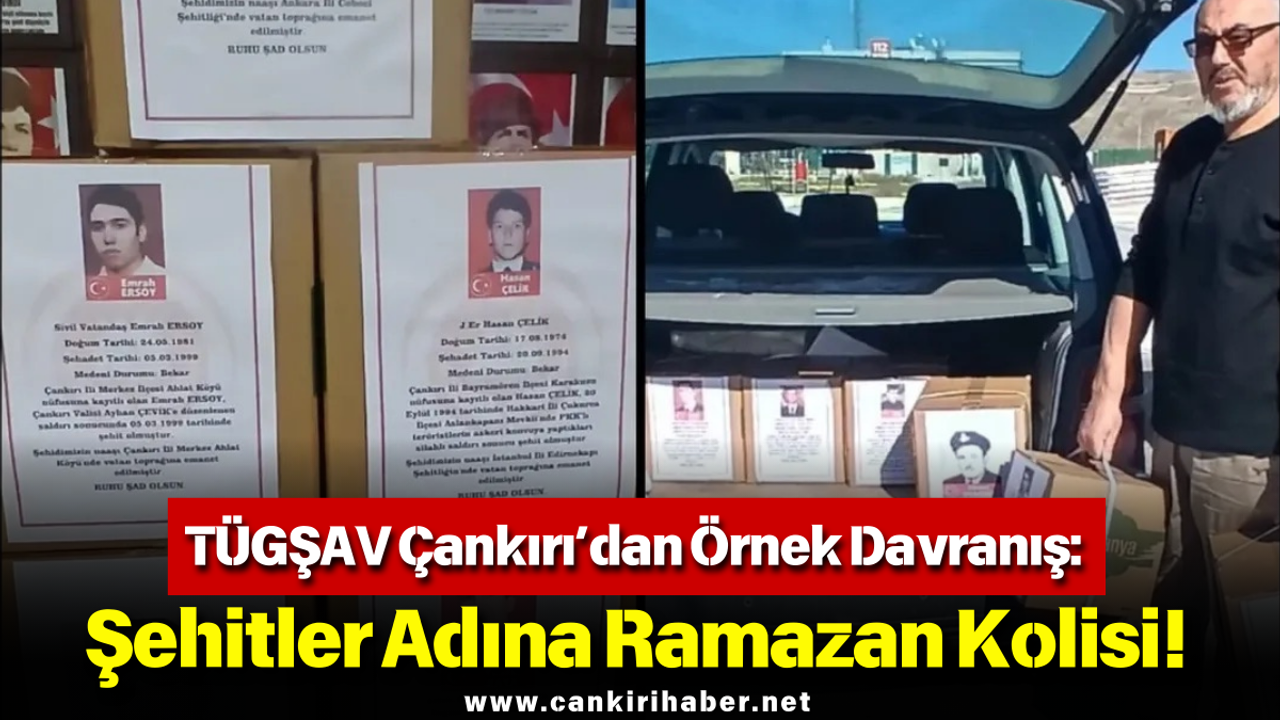 TÜGŞAV Çankırı Şubesi tarafından hazırlanan Ramazan kolileri, vatan uğruna canlarını feda eden şehitler Özgür Kara, Emrah Ersoy, Hasan Çelik, Ahmet Ovacıklı ve Yüksel Kaya adına ihtiyaç sahibi vatandaşlara ulaştırılmak üzere hazırlandı.