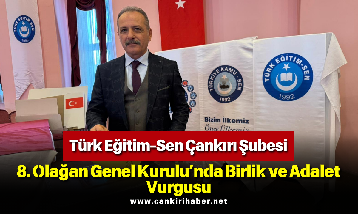 Türk Eğitim-Sen Çankırı Şubesi’nin 8. Olağan Genel Kurulu geniş katılım ve büyük bir coşku ile gerçekleştirildi. Programın açılışında birlik, kardeşlik ve sendikal duruşa dair güçlü mesajlar verildi. Katılımcılar, salonda oluşturulan dostluk ve dayanışma atmosferiyle genel kurulun önemini bir kez daha hissetti.
