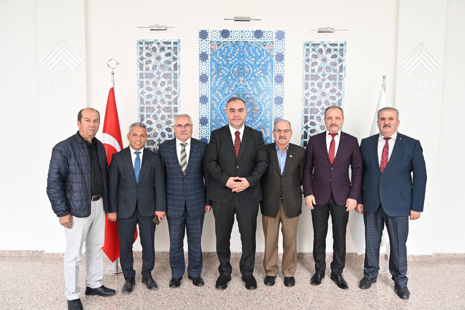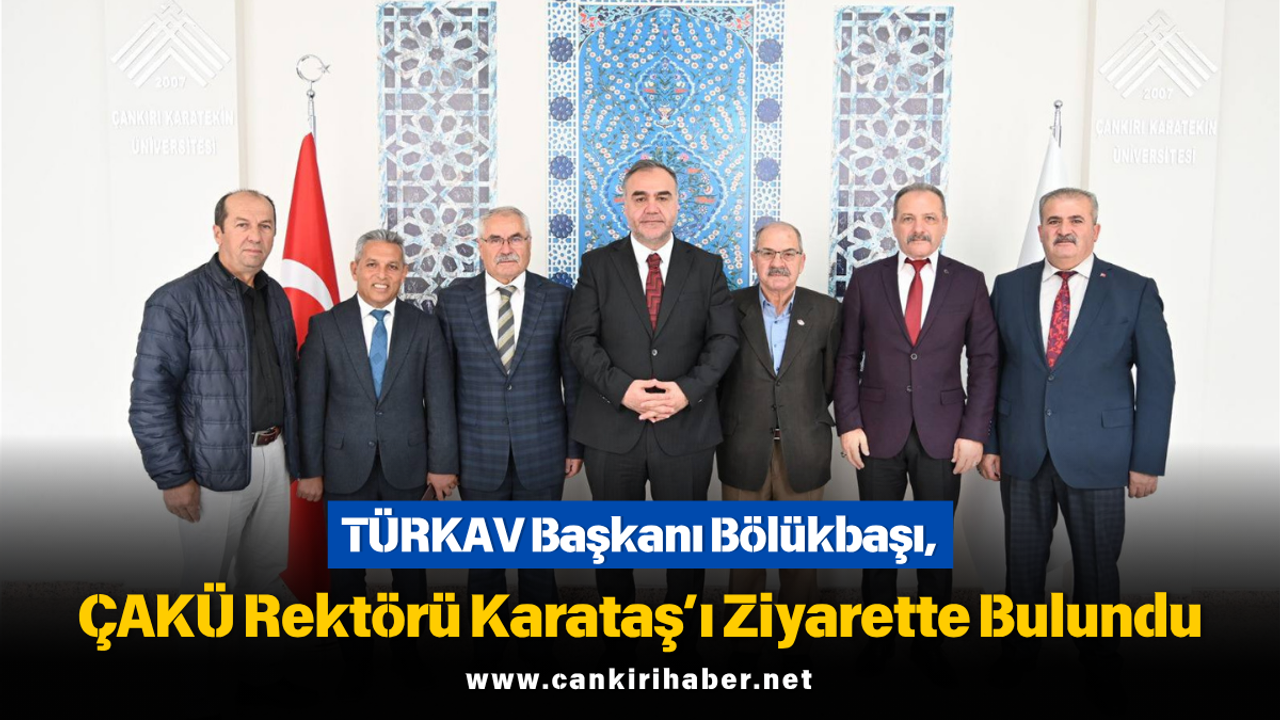 Türkiye Kamu Çalışanları Vakfı (TÜRKAV) Çankırı İl Başkanı İsa Bölükbaşı, yönetim kurulu üyeleri Nadir Kayaş, Yüksel Yandım, Ali Osman Göl, Osman Şahin ve Turgut Özkan ile birlikte Çankırı Karatekin Üniversitesi (ÇAKÜ) Rektörü Prof. Dr. Mevlüt Karataş’ı ziyaret ederek hayırlı olsun temennisinde bulundu. Ziyarette, ÇAKÜ Rektör Yardımcısı Prof. Dr. M. Nuri Öner de hazır bulundu.