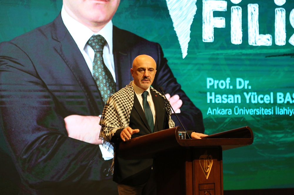 Etkinlikte ayrıca Ankara Üniversitesi İlahiyat Fakültesi Öğretim Üyesi Prof. Dr. Hasan Yücel Başdemir, Filistin’deki zulmün tarihini ve süregelen direnişi ele aldı. Başdemir, “Filistin’deki işgaller 1917’den itibaren başladı. 7 Ekim Aksa Tufanı direnişin sembolüdür ve bu olayı ‘terör saldırısı’ olarak tanımlamak cahillik ve insafsızlıktır” dedi. Tarihsel perspektif sunan Başdemir, yıllar içinde yaşanan köy baskınları, katliamlar ve sistematik yerinden etmeleri detaylı şekilde anlattı.