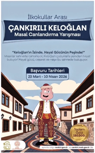 Çankırı Valiliği himayesinde ve Çankırı İl Millî Eğitim Müdürlüğü koordinasyonunda, Türkiye genelindeki ilkokul öğrencilerine yönelik “Çankırılı Keloğlan Masal Canlandırma Yarışması” düzenlenecek. Milli Eğitim Bakanlığının onayıyla gerçekleştirilecek yarışma, öğrencilerin kültürel değerleri tanıması ve geleneksel masal anlatımını sahneye taşıması amacıyla organize ediliyor.