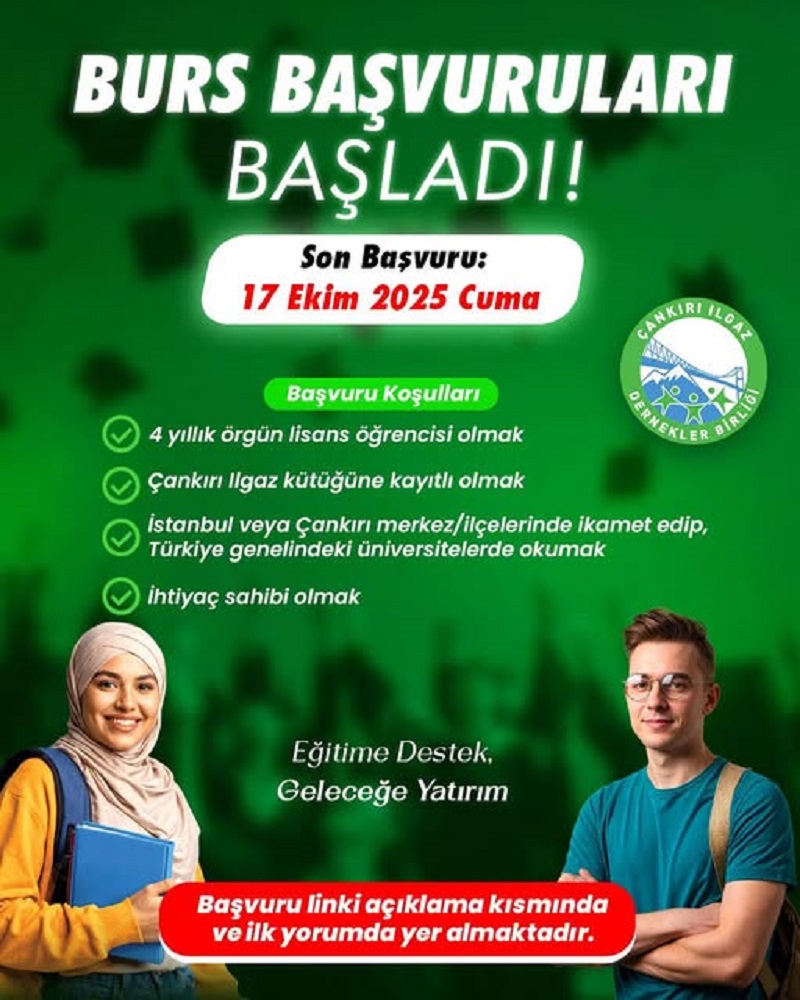 İstanbul Çankırı Ilgaz Dernekler Birliği, 2025 yılı üniversite burs başvurularının başladığını duyurdu.