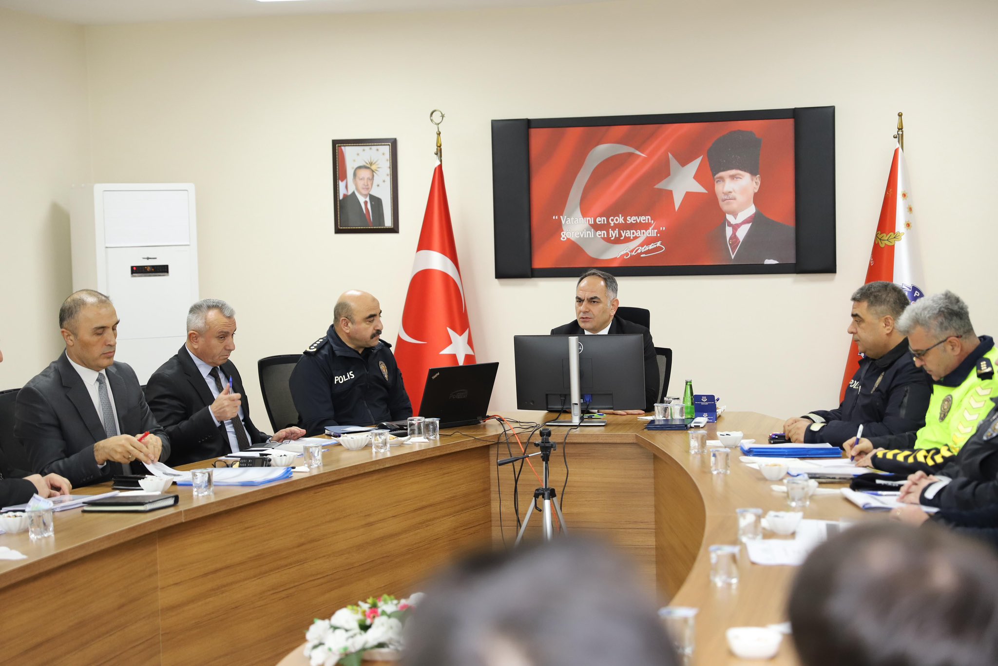 Toplantıda, özellikle vatandaşların huzur ve güvenliğini doğrudan ilgilendiren uygulamalar, suçla mücadele faaliyetleri ve önleyici güvenlik hizmetleri ele alınırken, kurumlar arası koordinasyonun önemi vurgulandı. Emniyet birimlerinin sahada yürüttüğü çalışmalar, planlanan uygulamalar ve güvenlik stratejileri hakkında da detaylı sunum yapıldı.