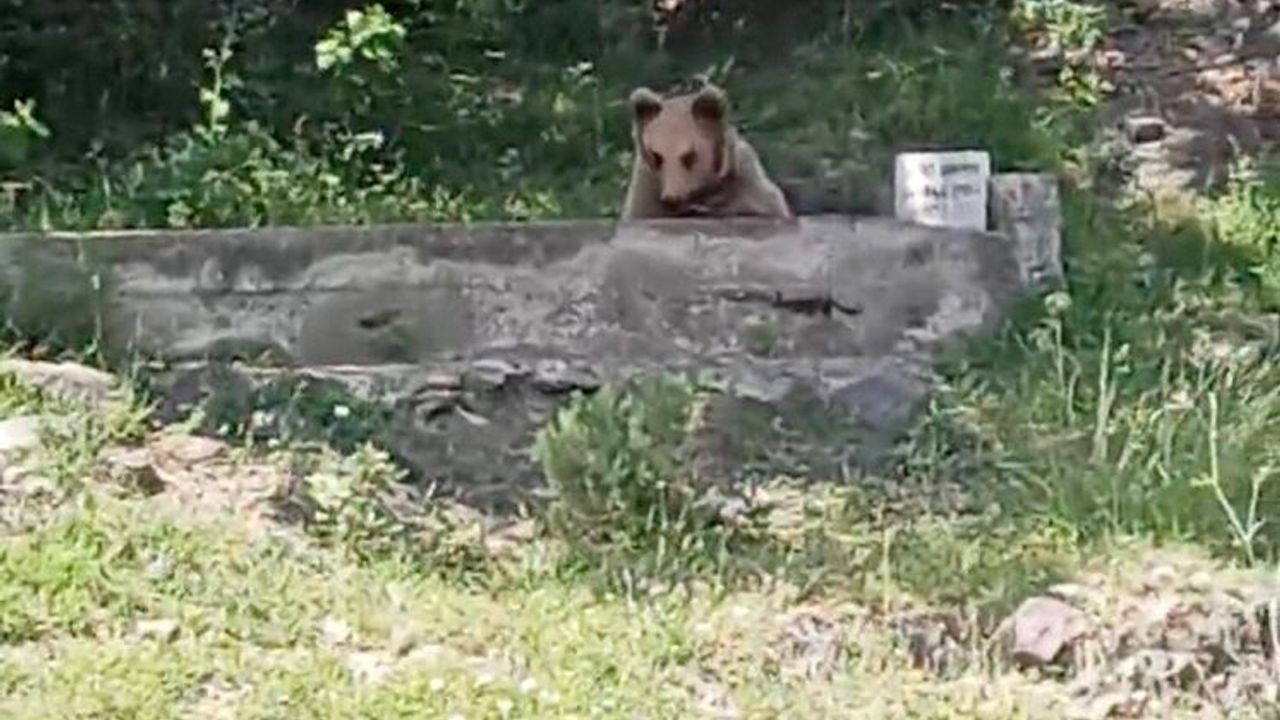 Kastamonu'nun Taşköprü ilçesinde sıcak havalardan bunalan bir bozayı, serinlemek için ilginç bir yöntem tercih etti. Doğal yaşam alanına yakın bir bölgede bulunan çeşmeye gelen ayı, önce kana kana su içti, ardından yalaktaki suya girerek serinlemeye çalıştı. Görenleri hem şaşırtan hem de gülümseten bu anlar, yoldan geçen bir vatandaş tarafından cep telefonu kamerasıyla kaydedildi.