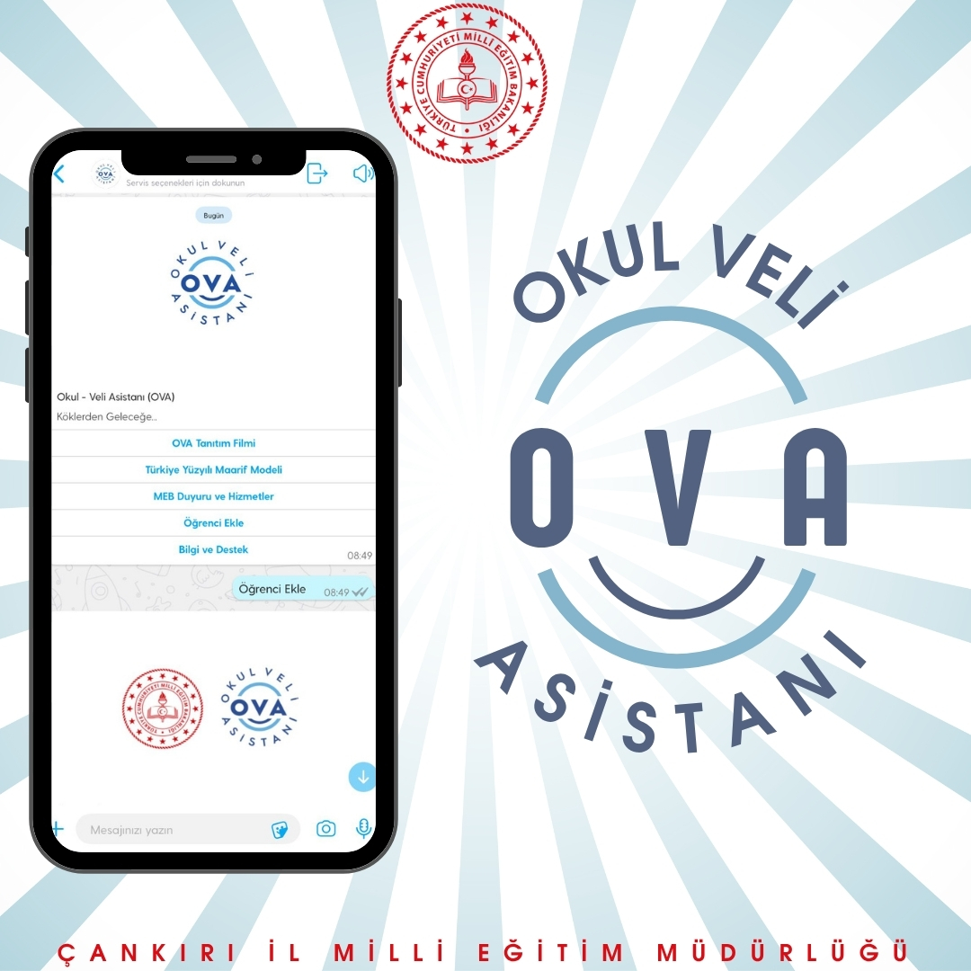 Çankırı İl Milli Eğitim Müdürlüğü, Millî Eğitim Bakanlığı ile Turkcell iş birliğiyle geliştirilen “MEB Okul-Veli Asistanı (OVA)” uygulamasının velilerin hizmetine sunulduğunu duyurdu.