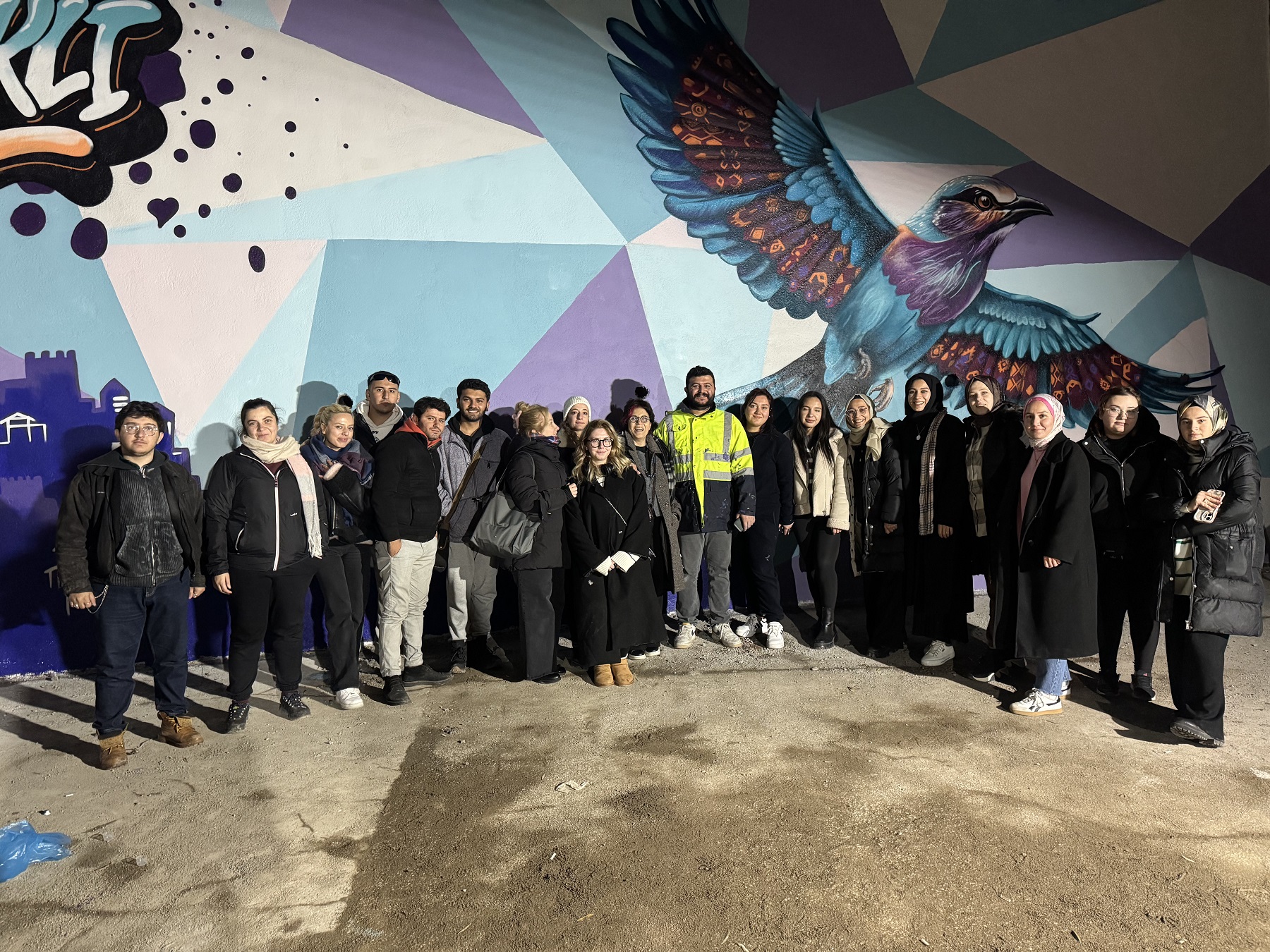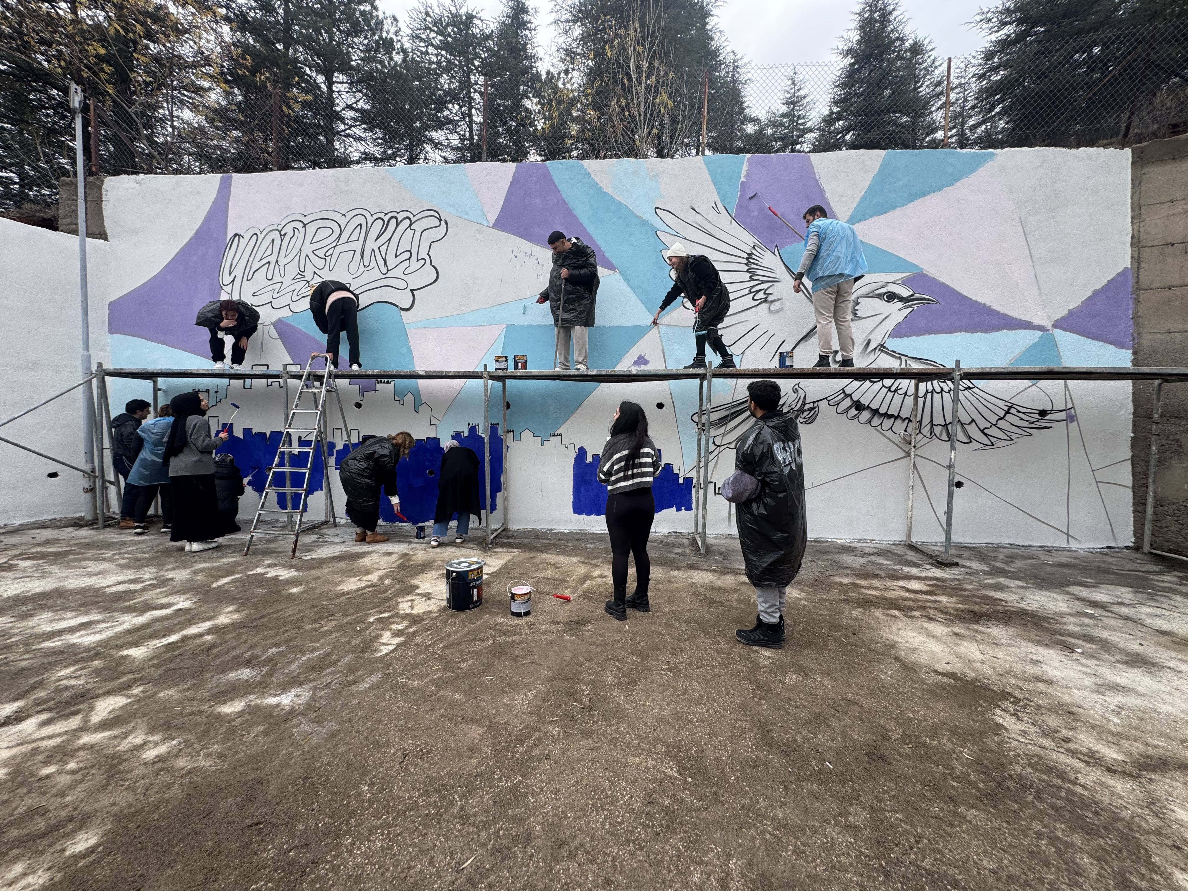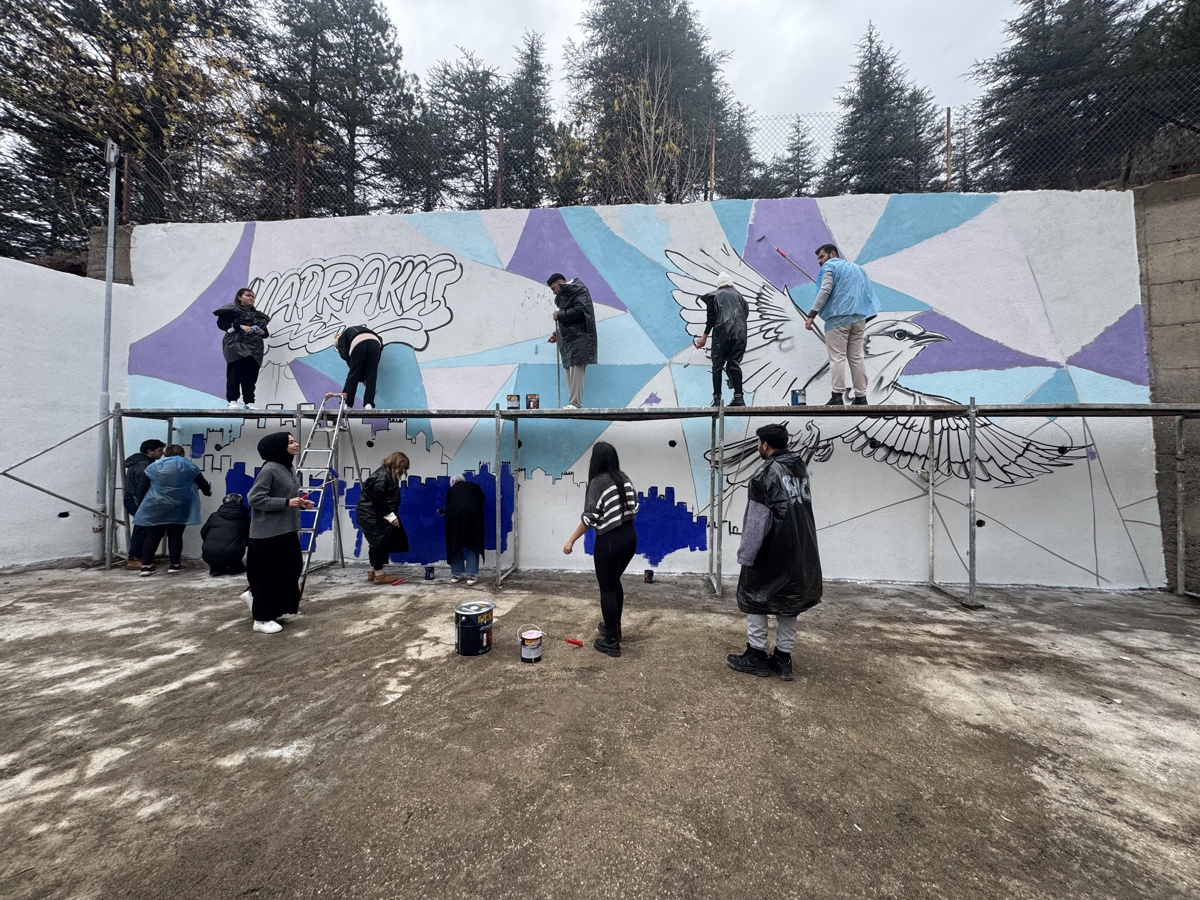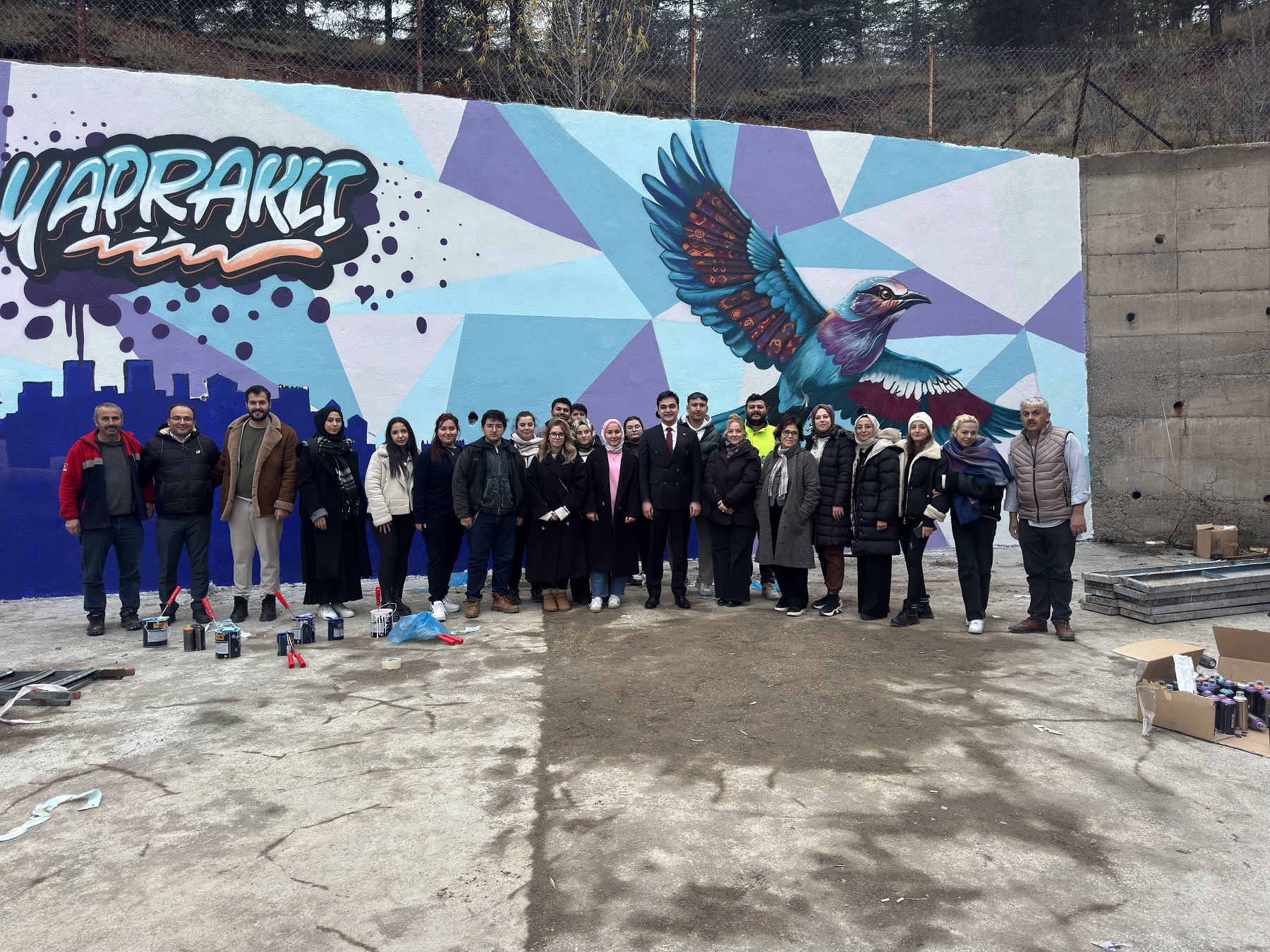 Sanat, Tasarım ve Mimarlık Fakültesi Resim Bölümü Öğretim Üyesi Doç. Dr. Nuray Akkol ile Grafik Tasarım Bölümü Dr. Öğr. Üyesi Seçil Ermiş İpek yürütücülüğünde gerçekleştirilen projeye, sanatçı Hasan Ali Yaldıran da katkı sundu. Grafik ve Resim Bölümü öğrencilerinin emeğiyle ortaya çıkan çalışma, Yapraklı’nın kültürel ve doğal değerlerini yansıtan özgün bir tasarımla kütüphane duvarına işlendi.