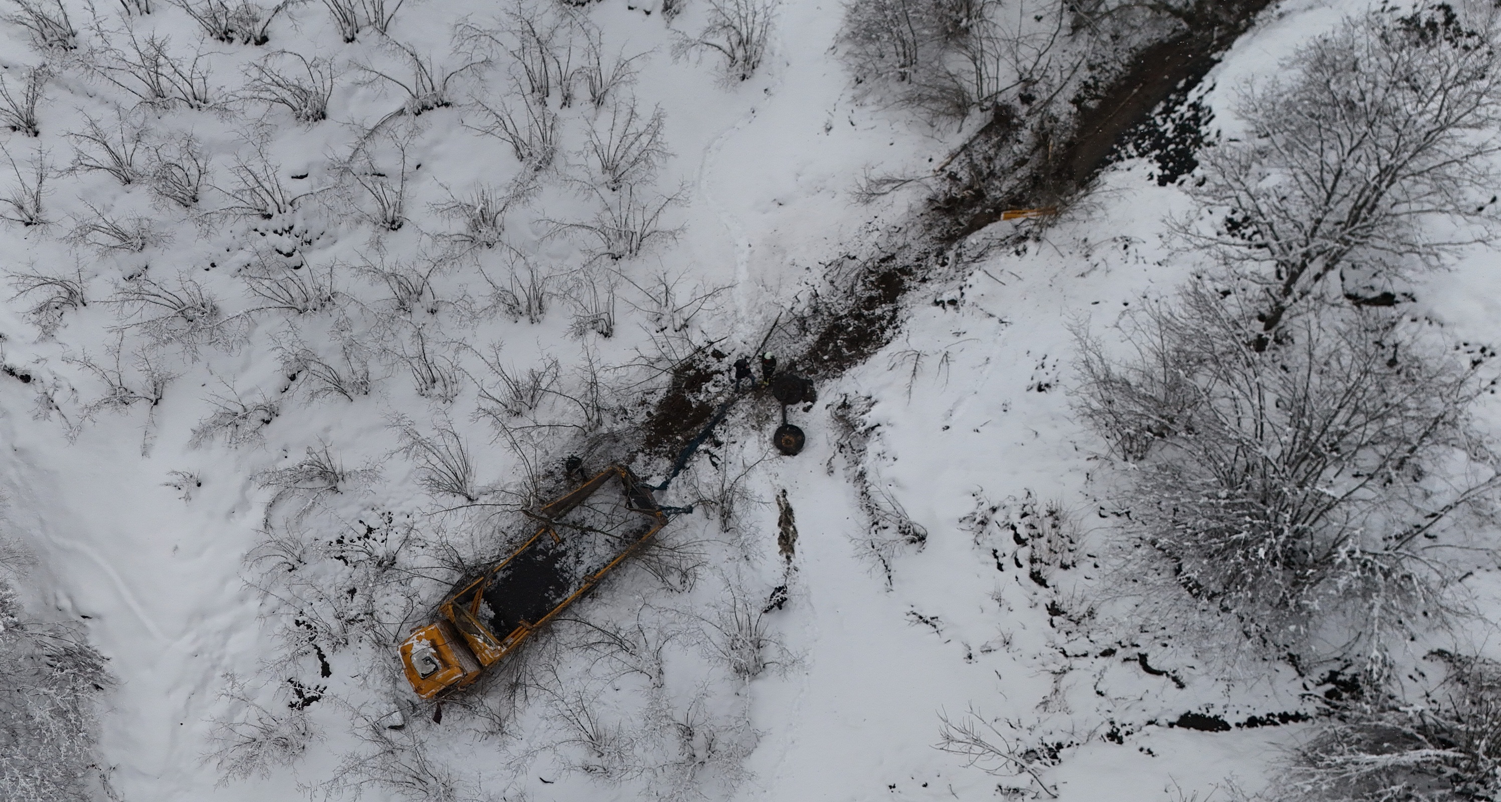 Öte yandan kaza anı, çevrede bulunan bir evin güvenlik kamerasına yansıdı. Görüntülerde, rampadan inen tırın kaygan zemin nedeniyle kontrolden çıktığı, bir süre duraksadıktan sonra hızla uçuruma sürüklendiği ve ardından devrilerek aşağıya düştüğü anlar net şekilde görüldü. O sırada bölgede bulunan vatandaşların panik içinde sağa sola kaçıştığı da kameraya yansıdı.