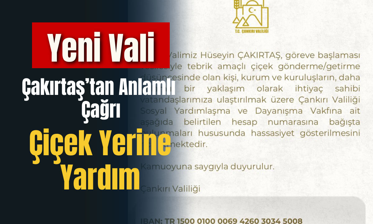 Valilik açıklamasında, tebrik amacıyla gönderilecek çiçekler yerine, ihtiyaç sahibi vatandaşlara ulaştırılmak üzere Çankırı Valiliği Sosyal Yardımlaşma ve Dayanışma Vakfı’na bağış yapılmasının tercih edildiği belirtildi. Bu yaklaşımın, toplumsal dayanışma ruhunu güçlendireceği ve gerçek ihtiyaçlara doğrudan katkı sağlayacağı vurgulandı.
