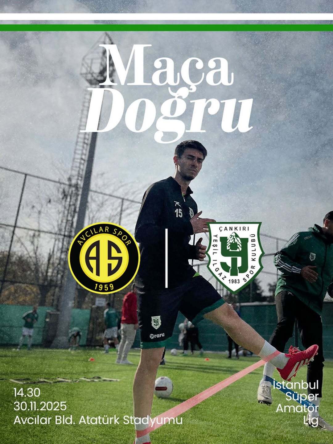 ÖZEL HABER/Çankırı’nın İstanbul’daki temsilcisi Yeşil Ilgaz Spor, 2025-26 sezonu Süper Amatör Lig 9. hafta mücadelesinde Avcılar SK ile karşılaşacak. Maç, 30 Kasım Pazar günü saat 14.30’da Avcılar Belediyesi Atatürk Stadyumu’nda oynanacak. Karşılaşma, spor kamuoyu tarafından yakından takip edilecek ve Yeşil Ilgaz Spor için kritik bir sınav niteliğinde olacak.