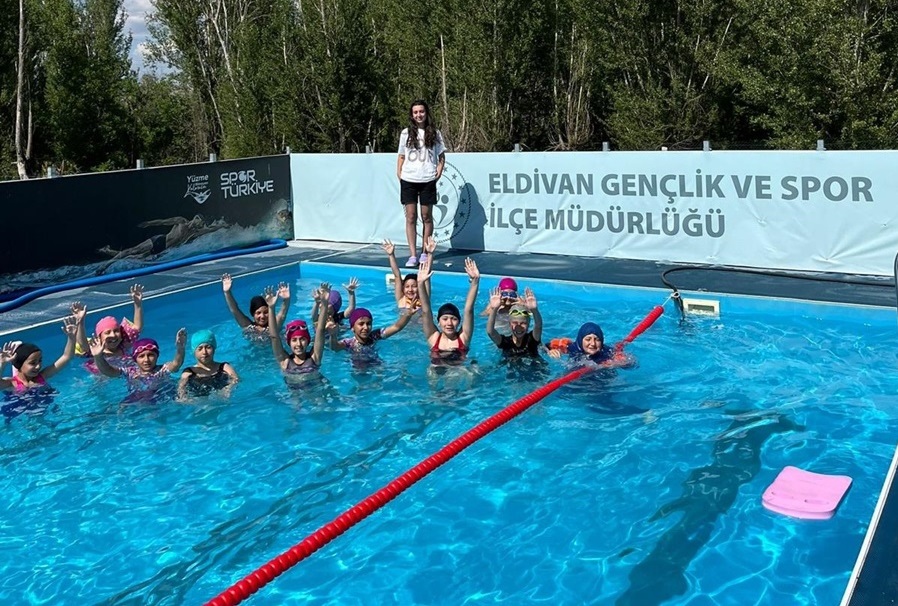Gençlik ve Spor Bakanlığı tarafından başlatılan GSB Spor Okulları kapsamında Eldivan’da yaz etkinlikleri tüm hızıyla devam ediyor. "Yaza hareketli giriyoruz" sloganıyla yola çıkan Eldivan Gençlik ve Spor İlçe Müdürlüğü, ilçede kurduğu portatif yüzme havuzuyla çocuklara hem spor hem serinlik fırsatı sunuyor.