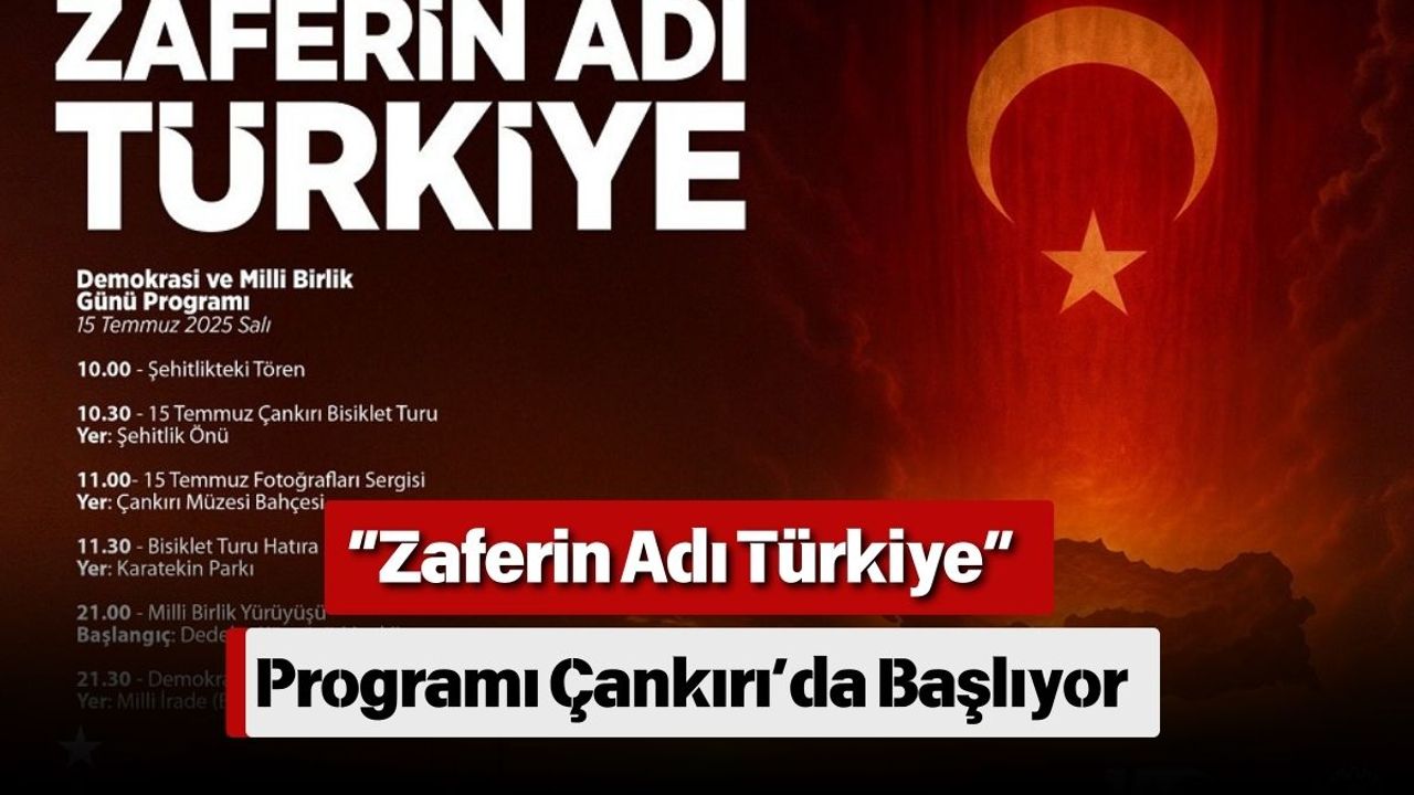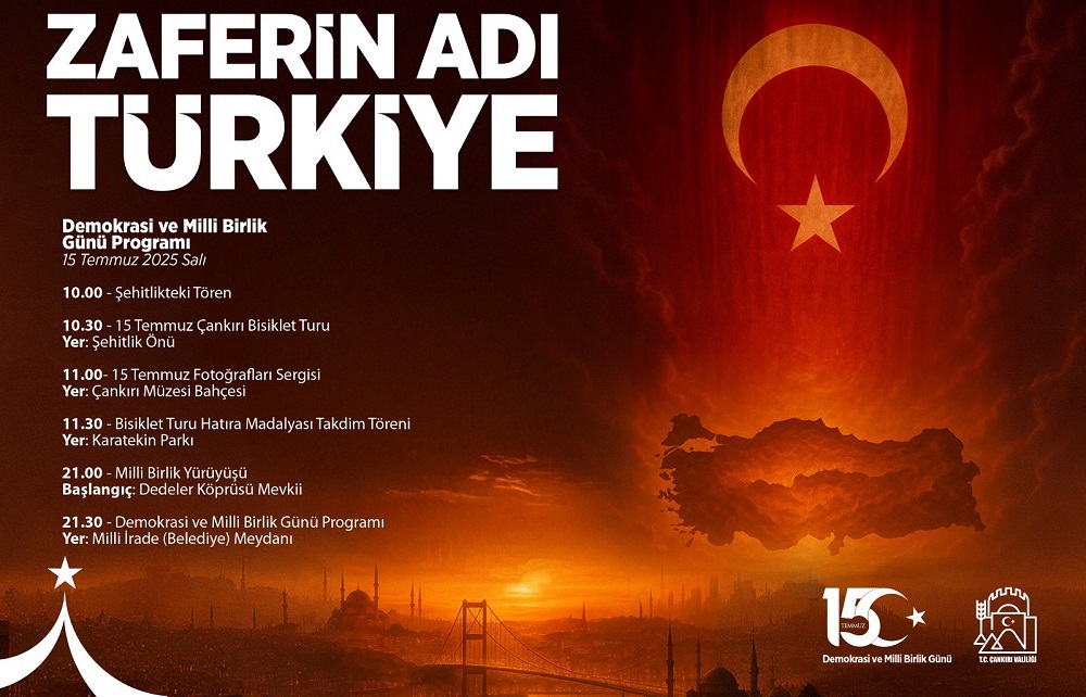 Çankırı Valiliği, 15 Temmuz Demokrasi ve Millî Birlik Günü kapsamında anma etkinliklerini “Zaferin Adı Türkiye” temasıyla gerçekleştirecek. 15 Temmuz 2025 Salı günü düzenlenecek programda vatandaşların birlik, beraberlik ve şehitlere vefa duygusu ön plana çıkacak.