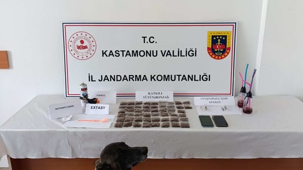 Edinilen bilgilere göre, jandarma ekipleri uzun süredir takip edilen şüphelilere yönelik kapsamlı bir operasyon düzenledi. Operasyon kapsamında yapılan aramalarda; 22 adet ekstazi hap, 1 adet sentetik ecza hapı, 356 gram sentetik kannabinoid katkılı tütün, 1 gram metamfetamin, 4 adet uyuşturucu kullanma aparatı, 1 paket sigara sarma kâğıdı, 50 adet kurusıkı silah fişeği ve 2 adet cep telefonu ele geçirildi.